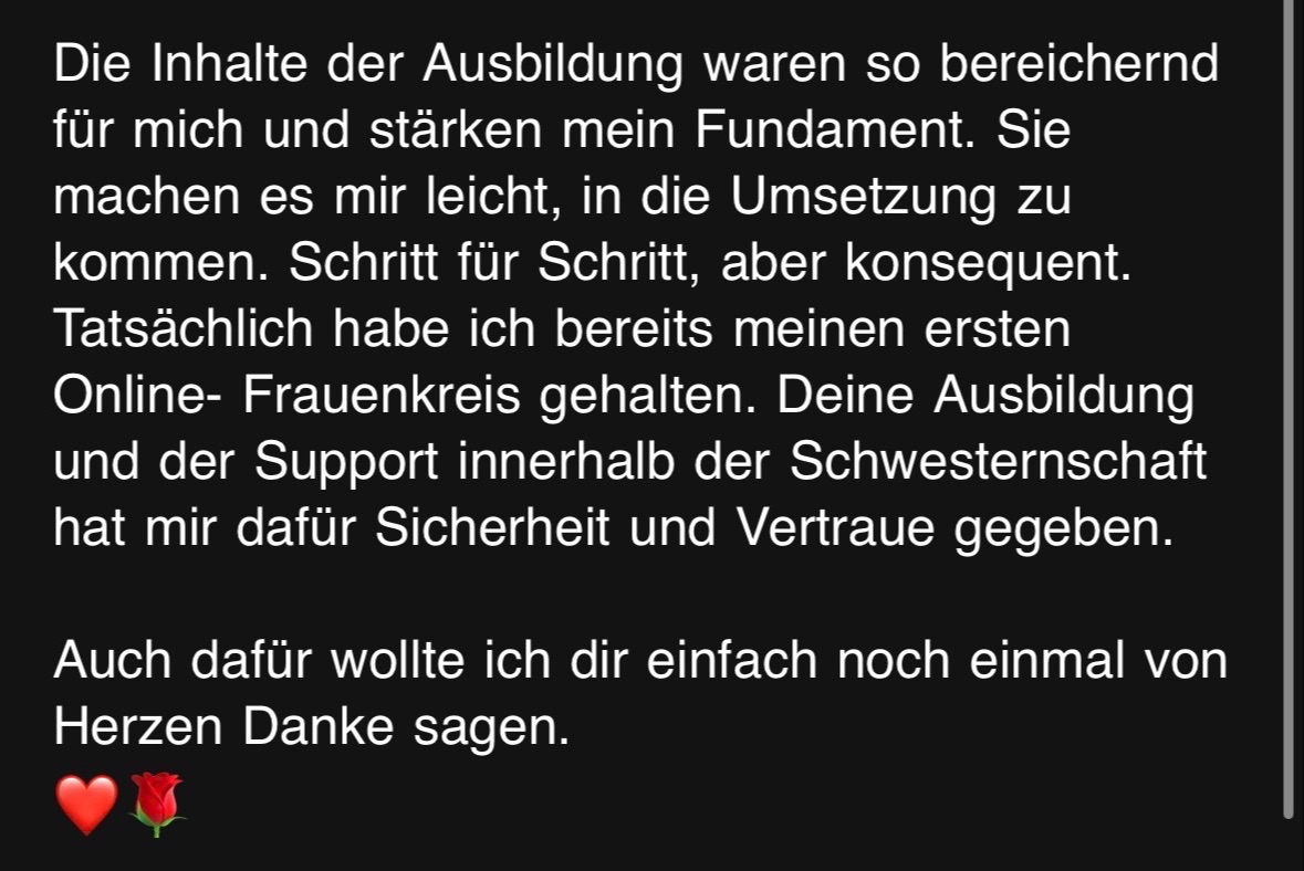 Diesen Ruf in dir, Räume zu öffnen, die Frauen verbinden, stärken und heilen. Du träumst davon, Frauenkreise zu leiten, aber dir fehlt die Klarheit, wie du anfangen kannst? Vielleicht fragst du dich, ob du wirklich bereit bist, die Verantwortung zu übernehmen, einen Raum zu halten, in dem Heilung, Tiefe und Wachstum geschehen können.