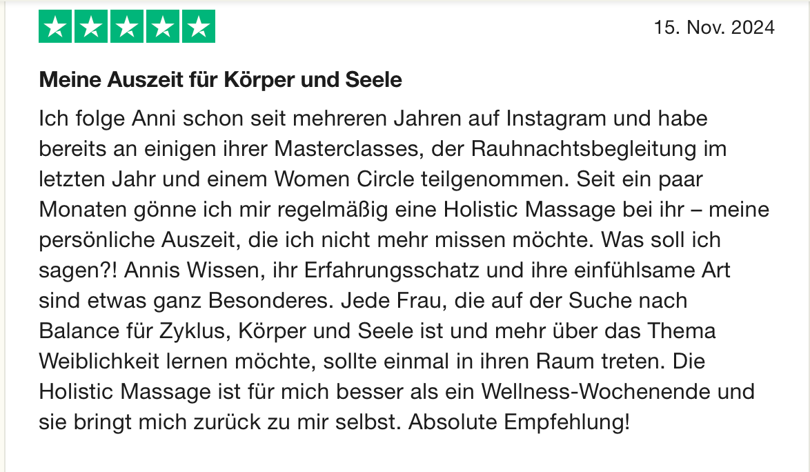 Meine Begleitung ist individuell und empathisch: Ich sehe jede Frau in ihrer Einzigartigkeit, höre genau hin und passe meine Methoden an ihre Bedürfnisse an. Ich unterstütze dabei, alte Blockaden sanft zu lösen, traumatische Erfahrungen zu integrieren und deine intuitive Weisheit zu stärken.