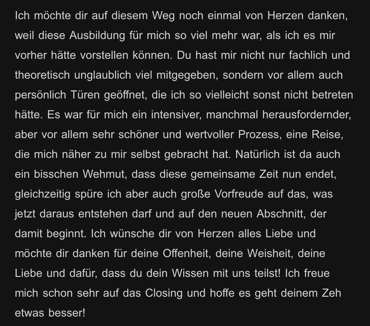 - Raum für persönliche Fragen, Prozesse und Feedback innerhalb der Gruppe