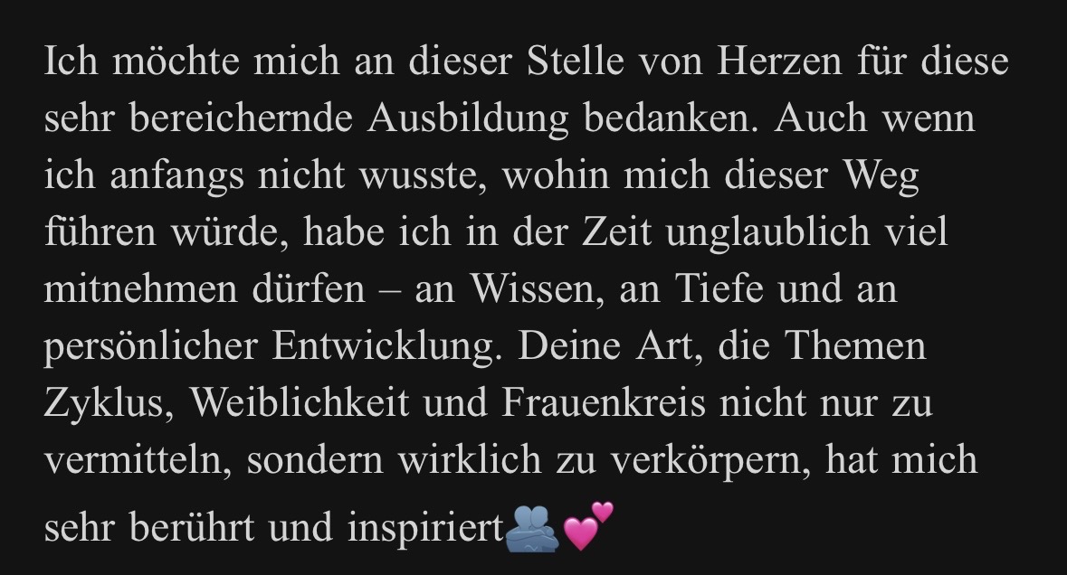 Nach Abschluss der Ausbildung bist du in der Lage, Frauenkreise eigenständig zu halten – mit Klarheit, Präsenz und einem tiefen Verständnis für Gruppenprozesse und weibliche Heilungsräume.