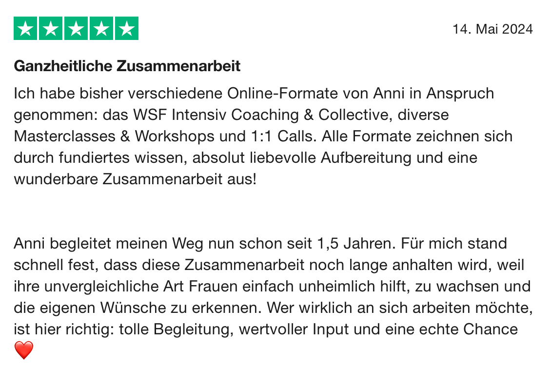 ✔ dich in einem intimen Kreis von Frauen gehalten fühlen möchtest